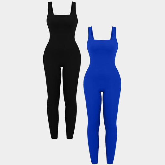 OYV Women'S Square Neck Sleeveless Rompers Exercise Jumpsuits – Stretchy Fitted Jumpsuit for Casual or Athletic Wear